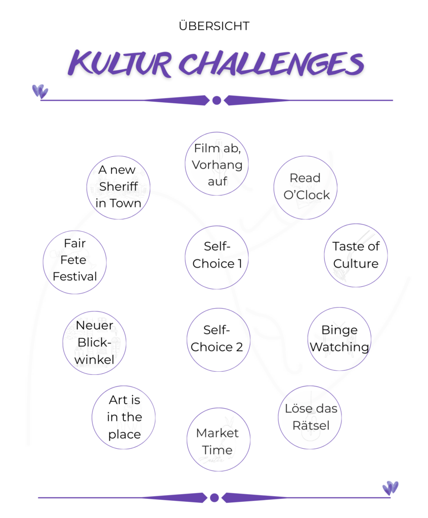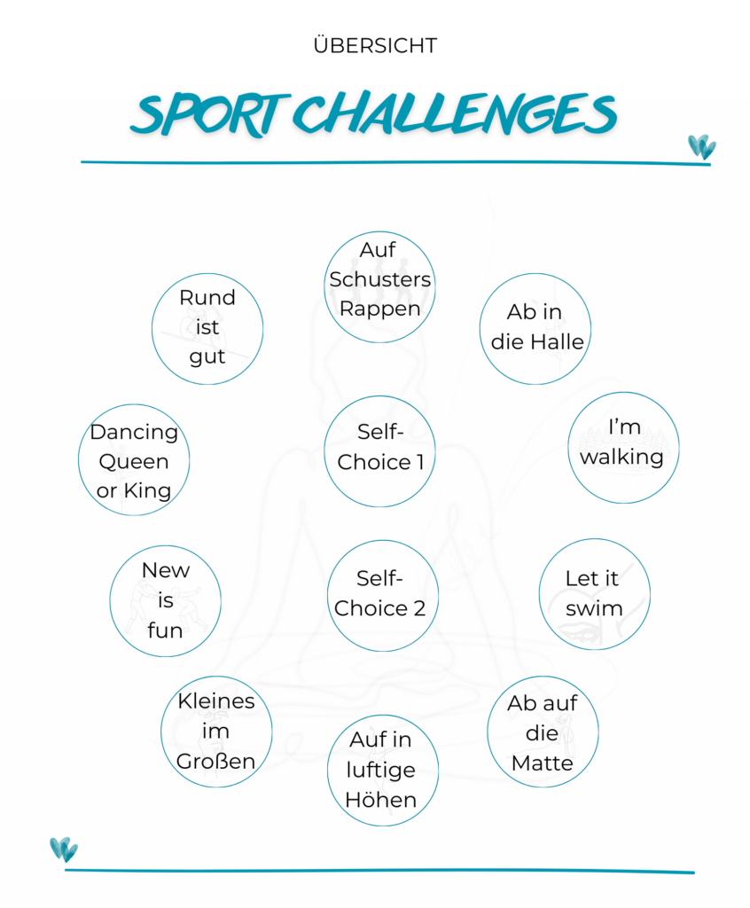 Vier Bereiche á 10 -12 Challenges warten auf dich! 😀 Und es geht hier vor allem um das Erleben, Erinnerungen schaffen und Herausforderungen meistern 🙂