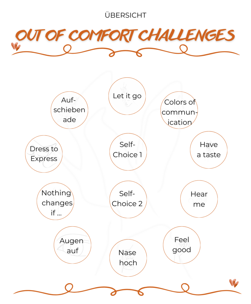 LILO ME, die verlagsinterne Reihe von Lilome Verlag, wird von mehreren Autor*innen in regelmäßigen Abständen bestückt. Und so unterschiedlich deren Charaktere und Stilrichtungen sind, ist auch das Programm von Lilo Me. Dieses Mal ein CHALLENGE BUCH von Julie Goldblum, die sich schon einmal ein ganzes Jahr ihren Herausforderungen gestellt, und viele ihre Herzenswünsche erfüllt hat. Bei der Auswahl der Challenges hatten wir aber alle viel Spaß 🙂 Hier ein paar Beispiele pro Bereich: